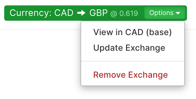 - Toggle your document between displaying with the exchanged totals, or without the exchange in your base currency