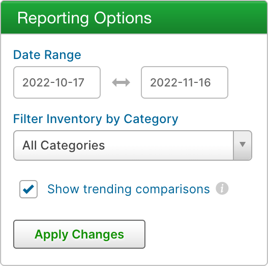 When generating your reports, optionally choose a specific date-range as well as many other options, all customized for each report.