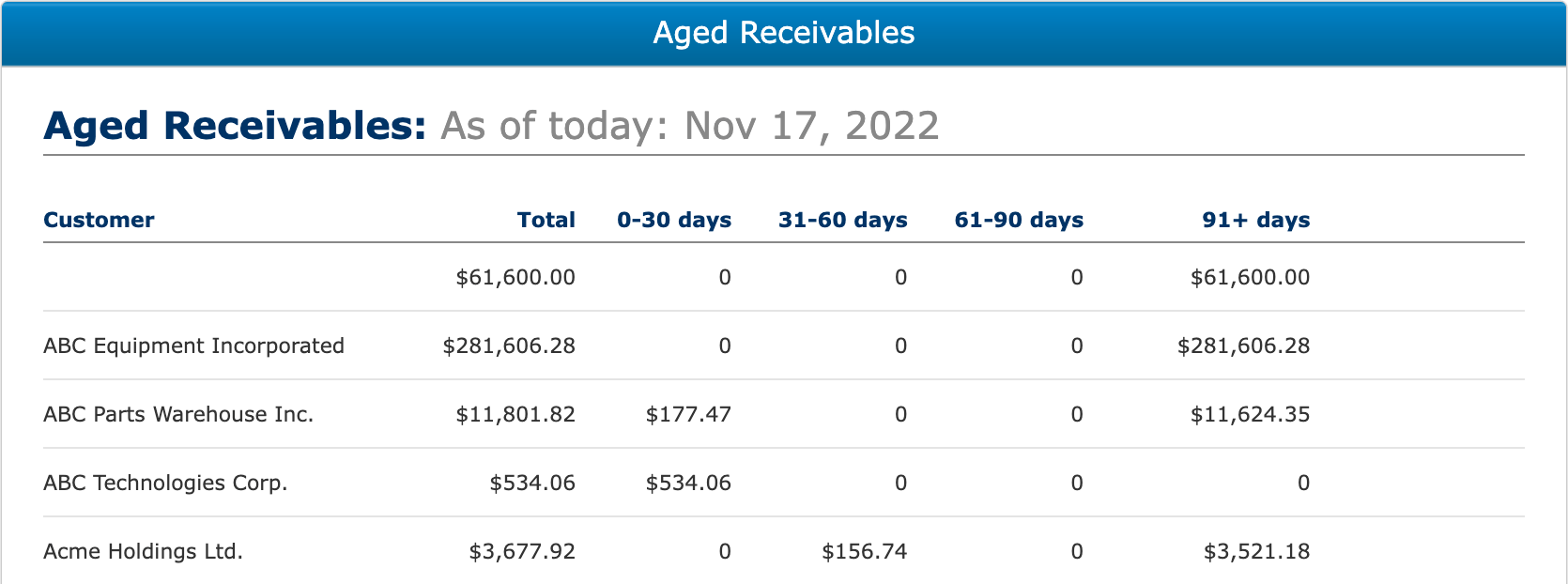 Generate your standard aged receivable reports and save them as a PDF for sharing with your accounting department.