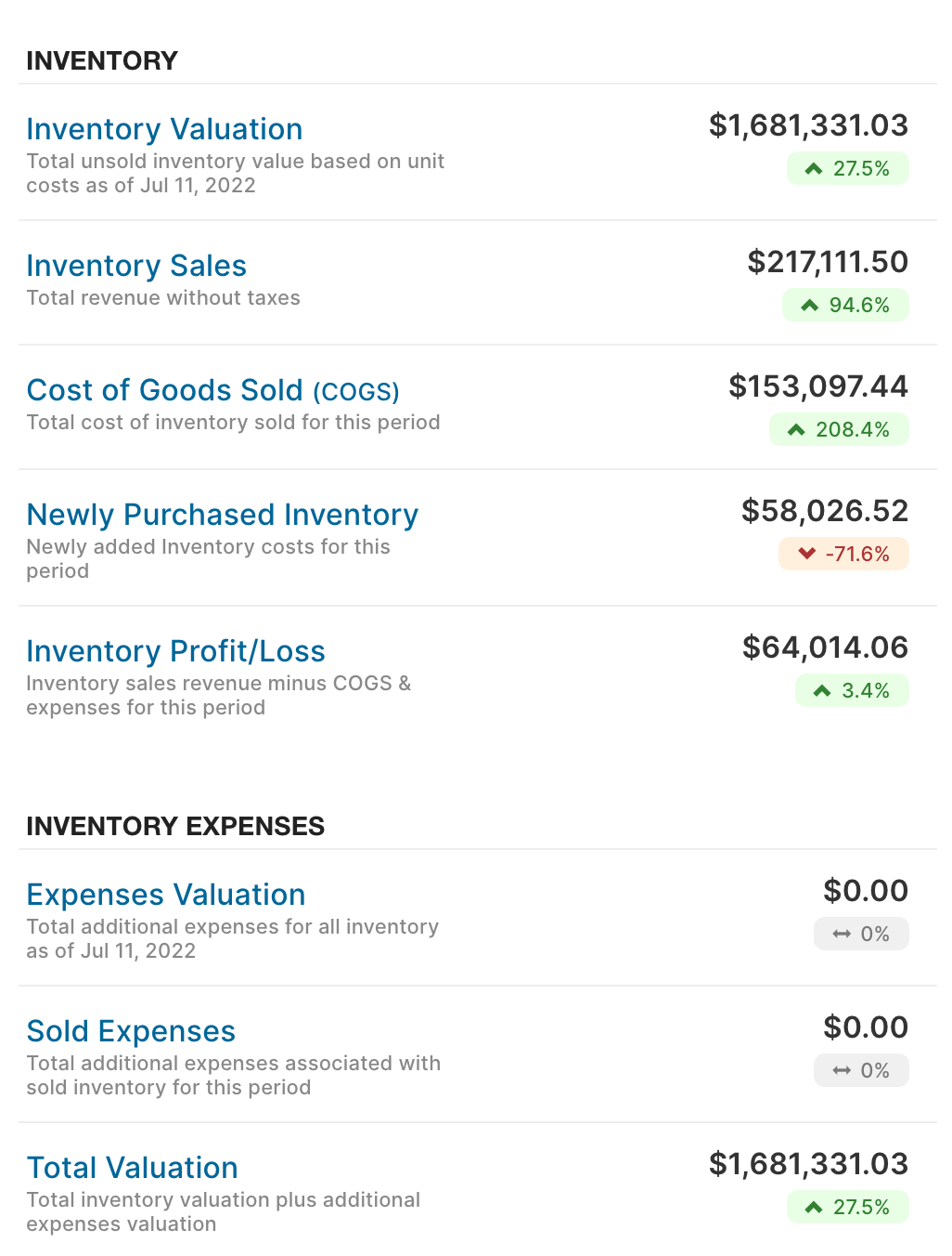 We also support reviewing your inventory valuation in real-time, or from a historical date (based on the end of that day).